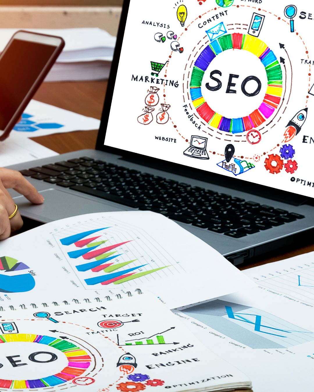 - SEO y Marketing de Contenidos: Optimizamos tu sitio web y creamos contenido que mejora tu posicionamiento en buscadores.